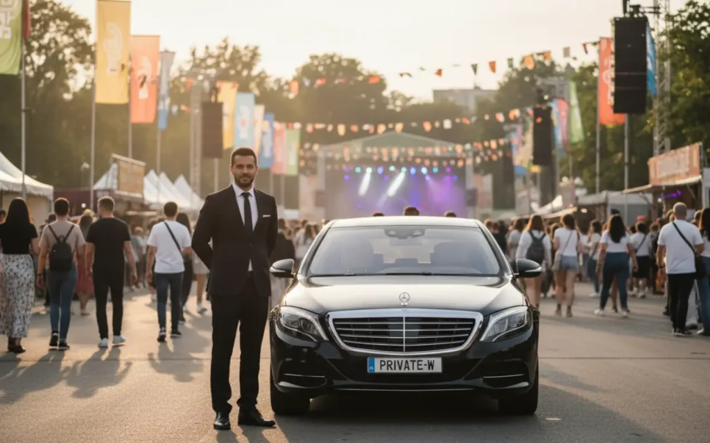 Nos chauffeurs connaissent les accès du parc et les zones VIP.