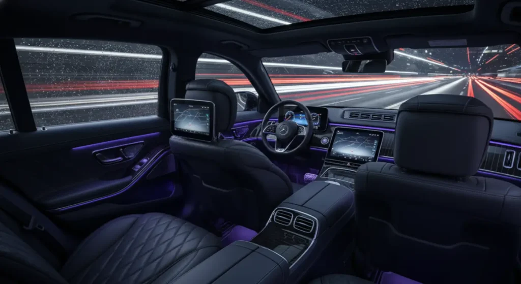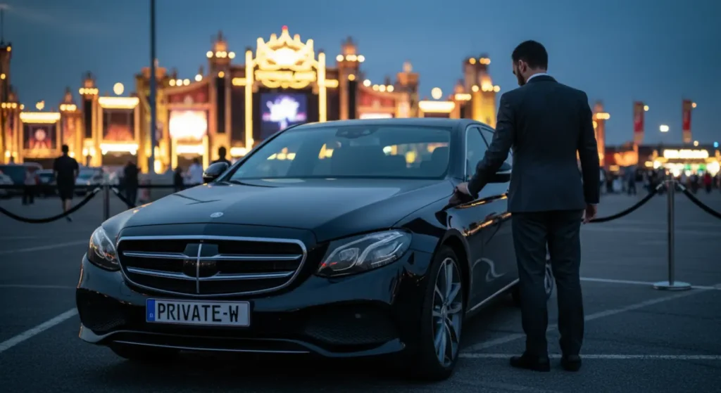 Confort absolu en Mercedes Classe E, Classe S ou Classe V (jusqu’à 7 passagers), parfait après une journée ou une nuit entière de festival.